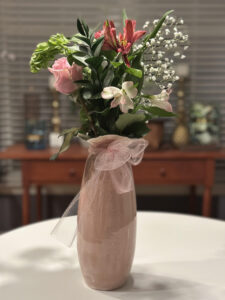 Guests were greeted with complimentary refreshments, sweets, and plenty of pink punch—an Instagram-worthy nod to the event’s signature color. Every registered attendee received a Fauquier Health tote bag filled with goodies, including a commemorative crystal champagne flute. A pop-up flower stand by Becca’s Bouquets added a delightful touch, allowing everyone to choose their own blooms and create a unique bouquet. Volunteers from Fauquier Health carefully wrapped each one—mine, to my surprise, was wrapped by Rebecca Segal, President and CEO of Fauquier Health!