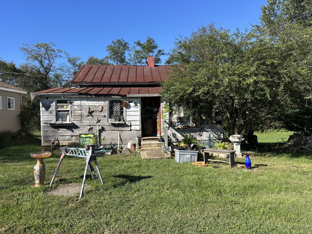 I drove 47 minutes to his studio in Flint Hill, through the one-shop main street of the town, then down a gravel path that glitched out my navigation system because the roads were unmapped. The “No Trespassing” signs were a bit intimidating, but since I was there by invitation, I proceeded through the gates, passing a dilapidated wood-paneled station wagon parked in the yard with a life-size skeleton behind the wheel.